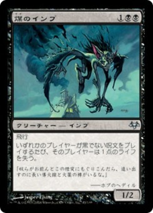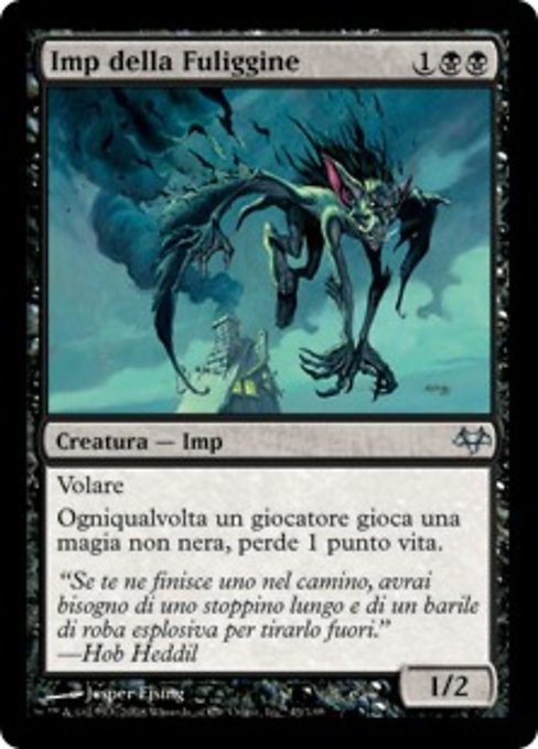 ![]() Variations— Parts— | Soot Imp1 / 2 Flying Whenever a player casts a nonblack spell, that player loses 1 life.