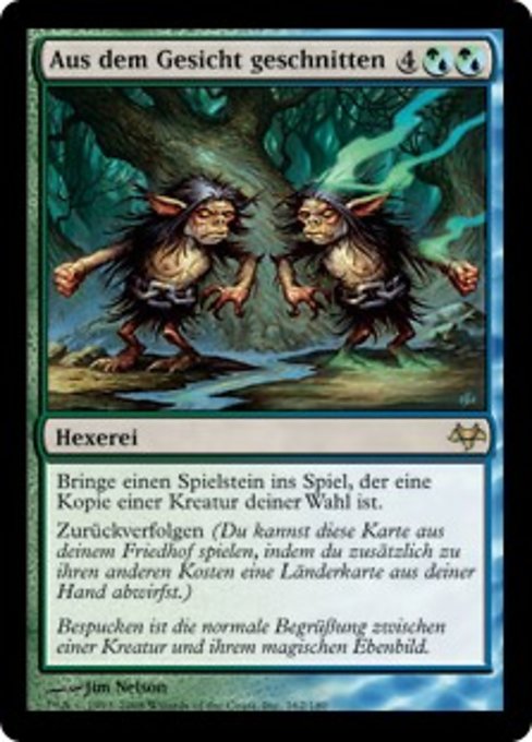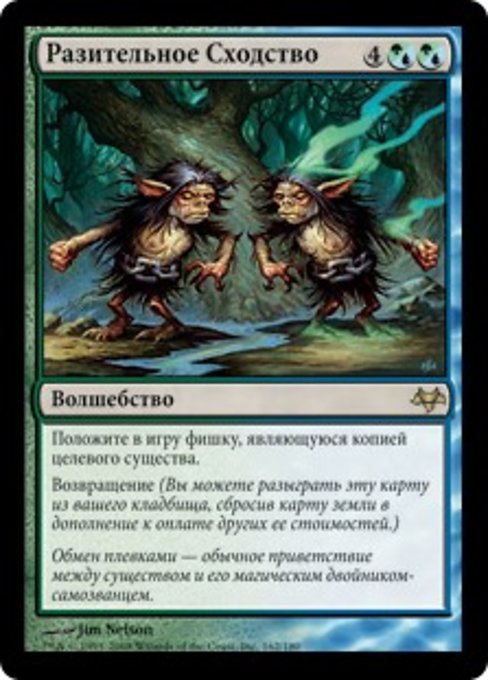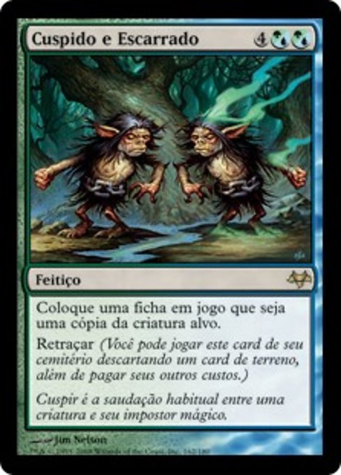 ![]() Variations— Parts— | Imagen escupidoraPon en juego una ficha que es una copia de la criatura objetivo. Desandar. (Puedes jugar esta carta desde tu cementerio descartando una carta de tierra además de pagar sus otros costes.)