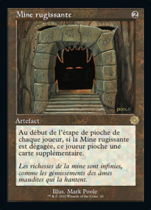 ![]() Variations— Parts— | Mine rugissanteAt the beginning of each player's draw step, if this artifact is untapped, that player draws an additional card.