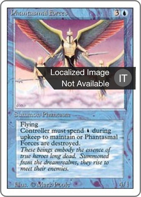 ![]() Variations— Parts— | Squadriglia Fantasma4 / 1 Flying At the beginning of your upkeep, sacrifice this creature unless you pay