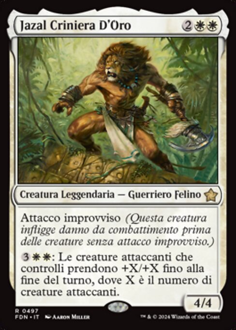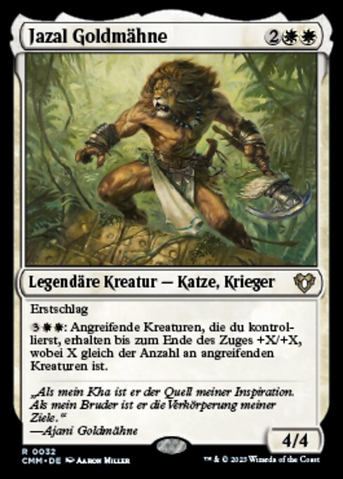 |  Variations— Parts— | Jazal Goldmähne4 / 4 Erstschlag (Diese Kreatur fügt Kampfschaden vor Kreaturen ohne Erstschlag zu.)