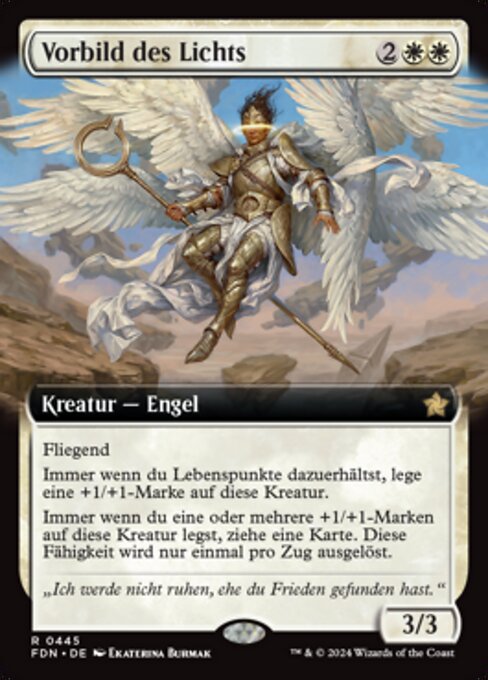|  Variations : 3Parts— | Exemplar of Light3 / 3 Flying Whenever you gain life, put a +1/+1 counter on this creature. Whenever you put one or more +1/+1 counters on this creature, draw a card. This ability triggers only once each turn.