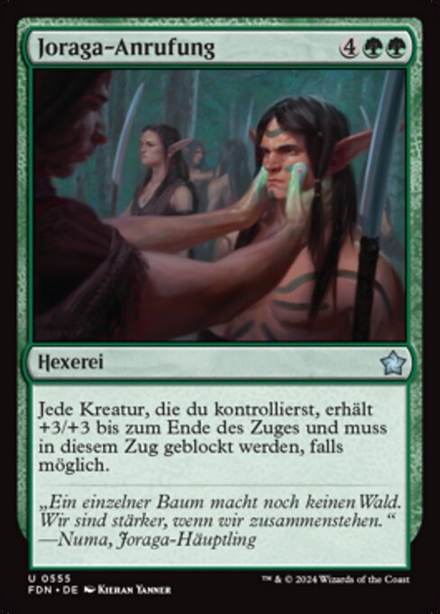 ![]() Variations— Parts— | Invocación joragaCada criatura que controlas obtiene +3/+3 hasta el final del turno y debe ser bloqueada este turno si se puede.