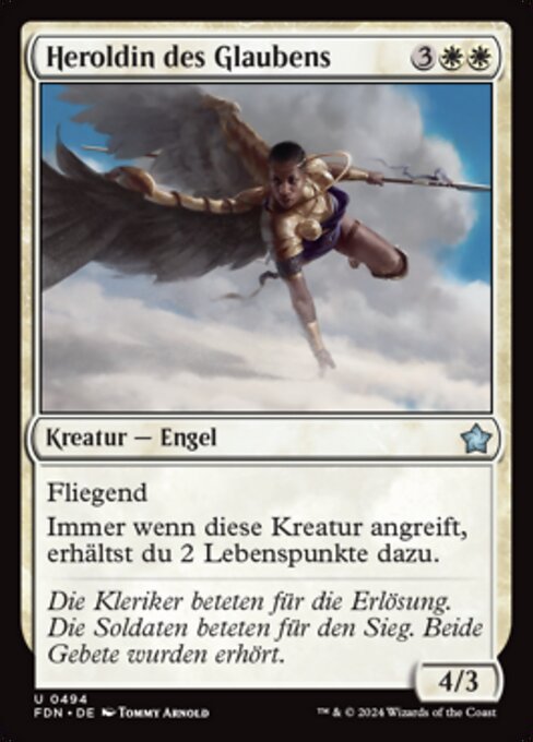 |  Variations— Parts— | Araldo della Fede4 / 3 Volare Ogniqualvolta questa creatura attacca, guadagni 2 punti vita.