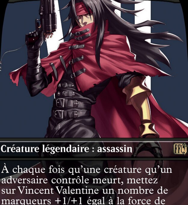 À chaque fois qu'une créature qu'un adversaire contrôle meurt, mettez sur Vincent Valentine un nombre de marqueurs +1/+1 égal à la force de cette créature.