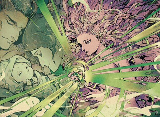 諜報2を行う。2点のライフを得る。この呪文が墓地から唱えられたなら、これを追放し、その後、オーナーのコントロール下で変身させた状態かつ最終カウンター1個が置かれた状態で戦場に出す。(最終カウンターが置かれているクリーチャーが死亡するなら、代わりにそれを追放する。)
