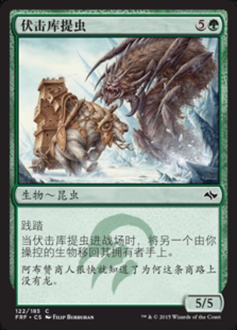 ![]() Variations— Parts— | Ambush Krotiq5 / 5 Trample When this creature enters, return another creature you control to its owner's hand.