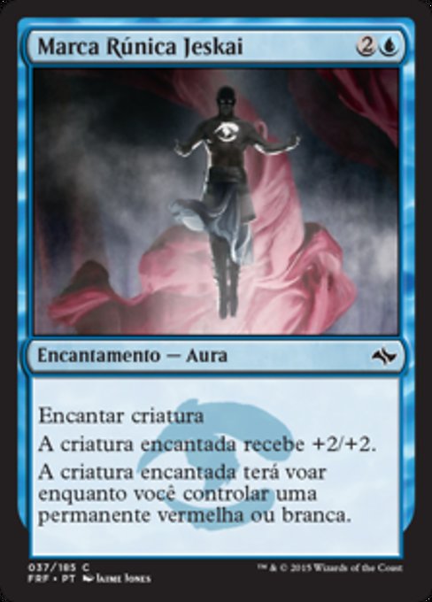 |  Variations— Parts— | Jeskai RunemarkEnchant creature Enchanted creature gets +2/+2. Enchanted creature has flying as long as you control a red or white permanent.