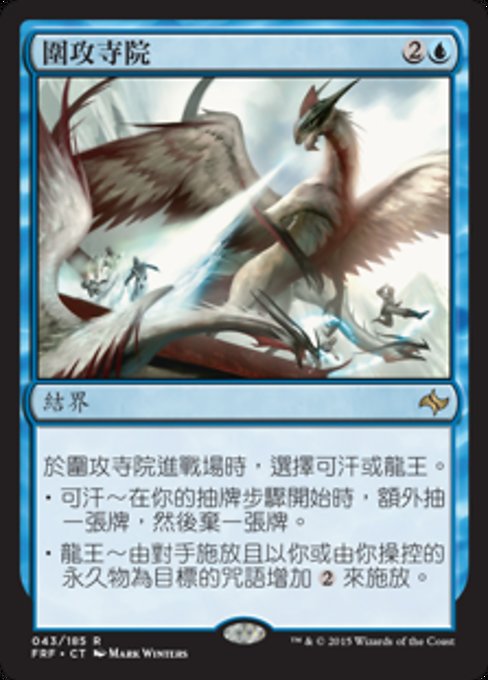 |  Variations : 1Parts— | Monastery SiegeAs this enchantment enters, choose Khans or Dragons. • Khans — At the beginning of your draw step, draw an additional card, then discard a card. • Dragons — Spells your opponents cast that target you or a permanent you control cost