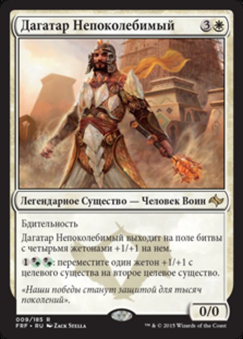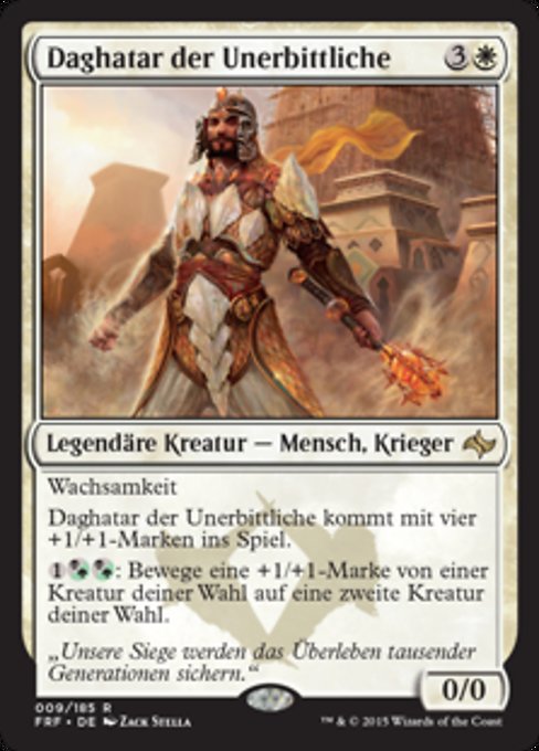 |  Variations— Parts— | Daghatar the Adamant0 / 0 Vigilance Daghatar enters with four +1/+1 counters on it.