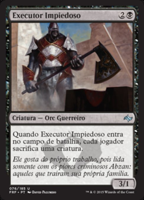 |  Variations— Parts— | Carnefice Spietato3 / 1 Quando il Carnefice Spietato entra nel campo di battaglia, ogni giocatore sacrifica una creatura.