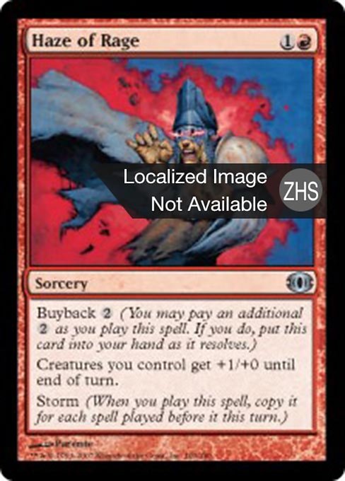 |  Variations— Parts— | Foschia di RabbiaRiscatto  Le creature che controlli prendono +1/+0 fino alla fine del turno. Tempesta (Quando giochi questa magia, copiala per ogni magia giocata prima in questo turno.)