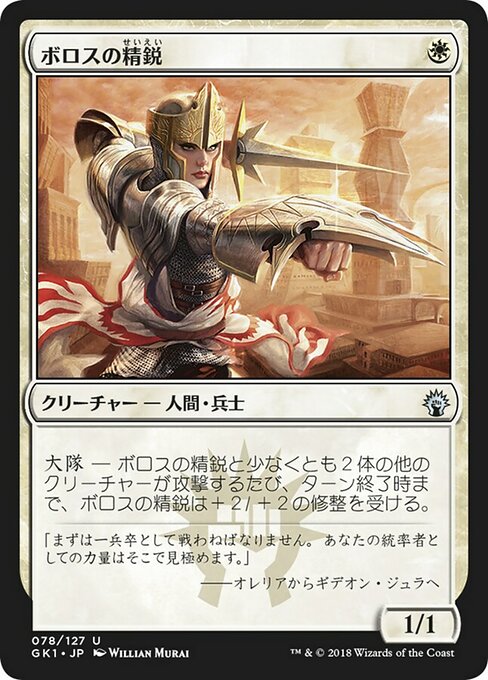 ![]() Variations— Parts— | Boros Elite1 / 1 Battalion — Whenever this creature and at least two other creatures attack, this creature gets +2/+2 until end of turn.
