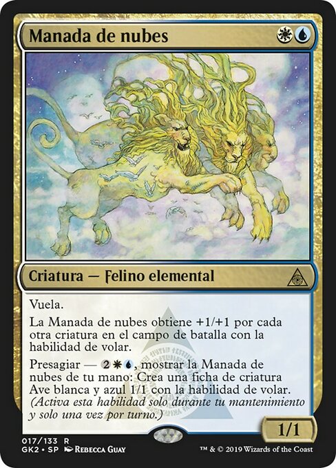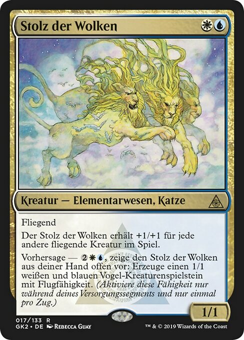 |  Variations— Parts— | Orgoglio delle Nubi1 / 1 Volare L'Orgoglio delle Nubi prende +1/+1 per ogni altra creatura con volare sul campo di battaglia. Previsione —