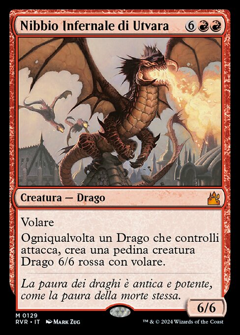 |  Variations— Parts— | Nibbio Infernale di Utvara6 / 6 Volare Ogniqualvolta un Drago che controlli attacca, crea una pedina creatura Drago 6/6 rossa con volare.