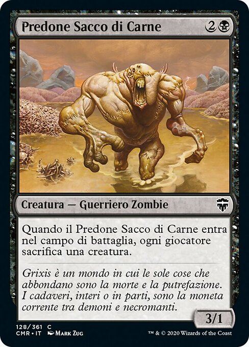 |  Variations— Parts— | Predone Sacco di Carne3 / 1 Quando il Predone Sacco di Carne entra nel campo di battaglia, ogni giocatore sacrifica una creatura.