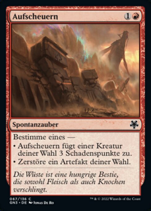 |  Variations— Parts— | AbrasioneScegli uno — • L'Abrasione infligge 3 danni a una creatura bersaglio. • Distruggi un artefatto bersaglio.