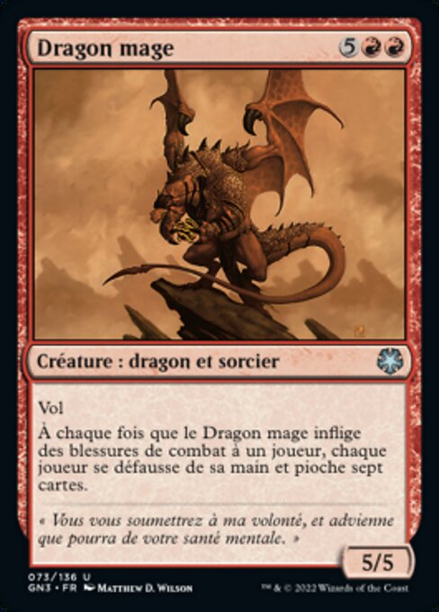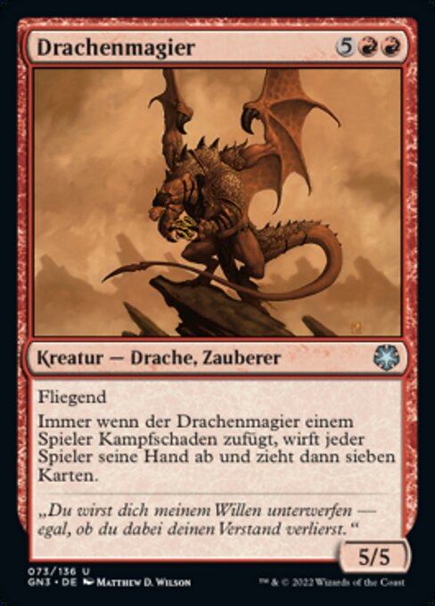 |  Variations— Parts— | ドラゴン魔道士5 / 5 飛行 ドラゴン魔道士がプレイヤー1人に戦闘ダメージを与えるたび、各プレイヤーはそれぞれ、自分の手札を捨て、その後カード7枚を引く。