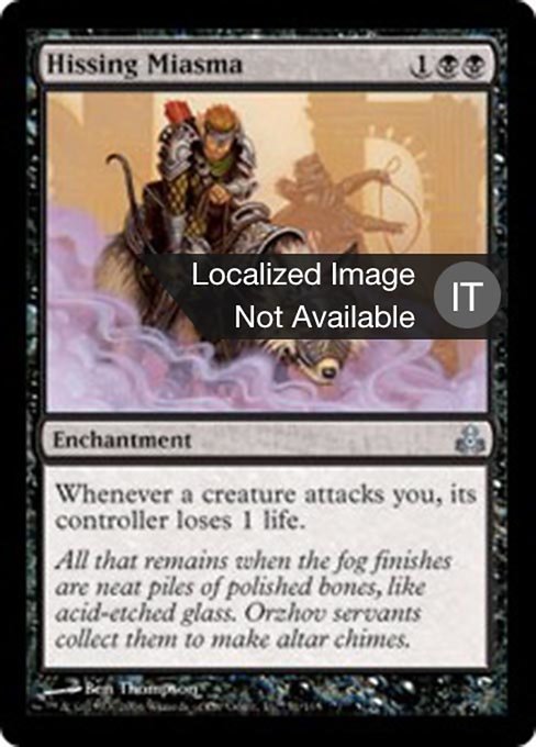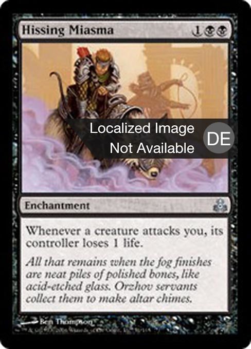 |  Variations— Parts— | Hissing MiasmaWhenever a creature attacks you, its controller loses 1 life.
