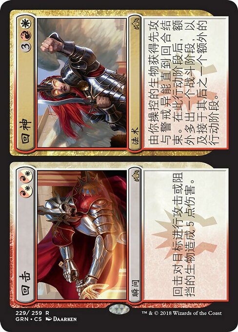 WiederaufflammenKreaturen, die du kontrollierst, erhalten Erstschlag und Wachsamkeit bis zum Ende des Zuges. Nach dieser Hauptphase gibt es eine zusätzliche Kampfphase, der eine zusätzliche Hauptphase folgt.