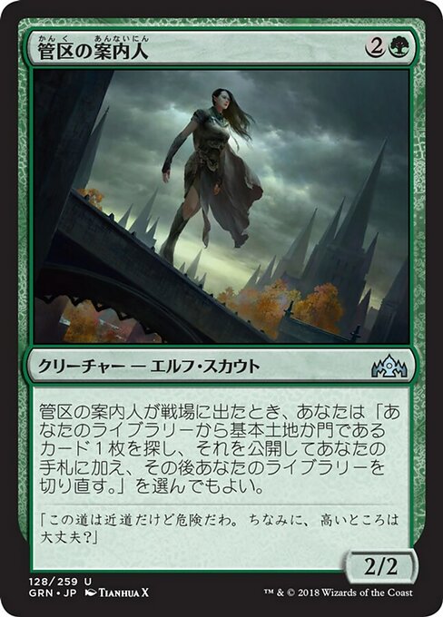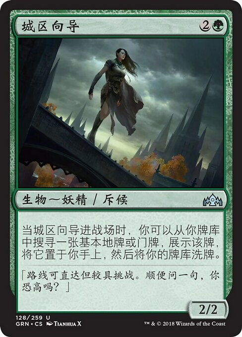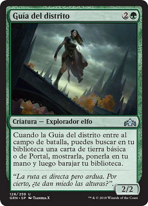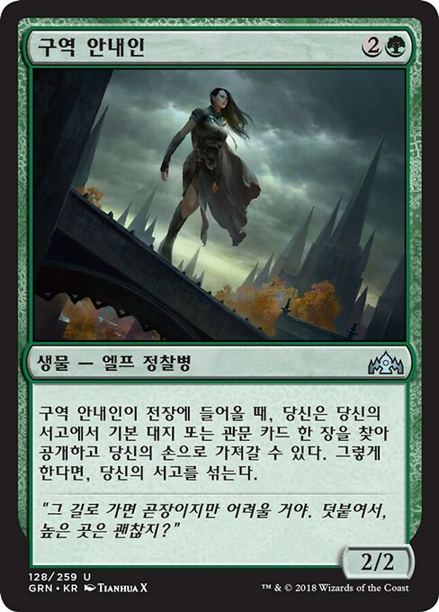 |  Variations— Parts— | District Guide2 / 2 When this creature enters, you may search your library for a basic land card or Gate card, reveal it, put it into your hand, then shuffle.