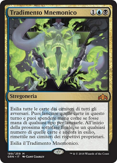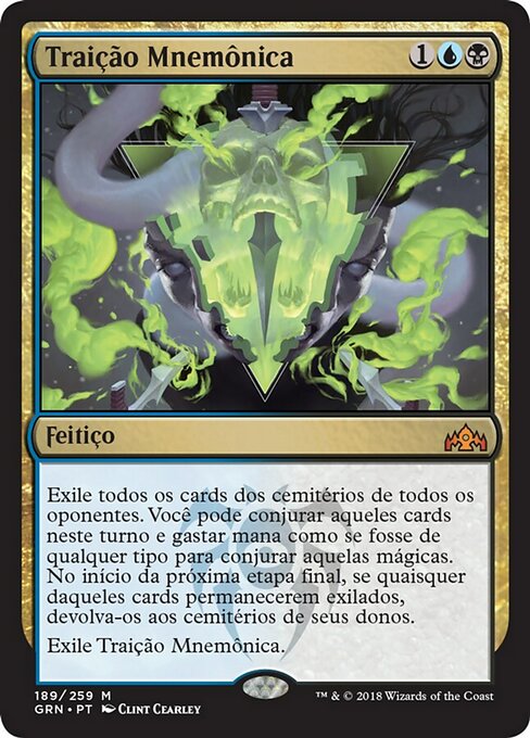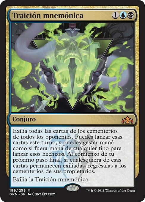 |  Variations— Parts— | Mnemonic BetrayalExile all opponents' graveyards. You may cast spells from among those cards this turn, and mana of any type can be spent to cast them. At the beginning of the next end step, if any of those cards remain exiled, return them to their owners' graveyards. Exile Mnemonic Betrayal.