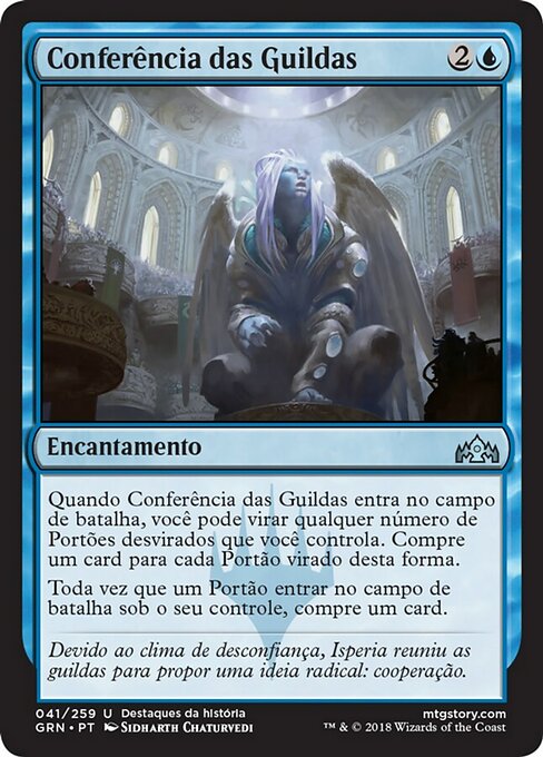 |  Variations— Parts— | Guild SummitWhen this enchantment enters, you may tap any number of untapped Gates you control. Draw a card for each Gate tapped this way. Whenever a Gate you control enters, draw a card.