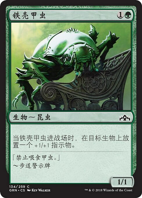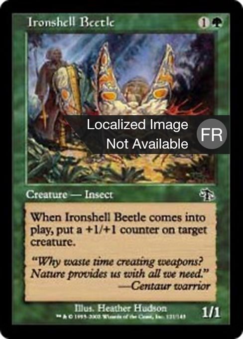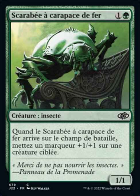 |  Variations— Parts— | Scarabée à carapace de fer1 / 1 Quand le Scarabée à carapace de fer arrive sur le champ de bataille, mettez un marqueur +1/+1 sur la créature ciblée.