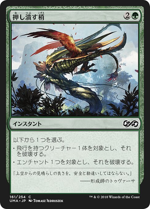 |  Variations— Parts— | 押し潰す梢以下から1つを選ぶ。 • 飛行を持つクリーチャー1体を対象とし、それを破壊する。 • エンチャント1つを対象とし、それを破壊する。