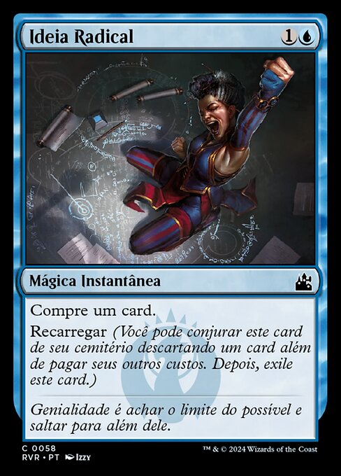 |  Variations— Parts— | Ideia RadicalCompre um card. Recarregar (Você pode conjurar este card de seu cemitério descartando um card além de pagar seus outros custos. Depois, exile este card.)