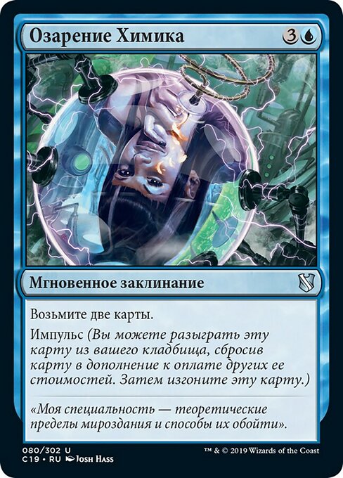 |  Variations— Parts— | Озарение ХимикаВозьмите две карты. Импульс (Вы можете разыграть эту карту из вашего кладбища, сбросив карту в дополнение к оплате других ее стоимостей. Затем изгоните эту карту.)