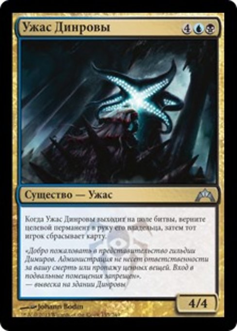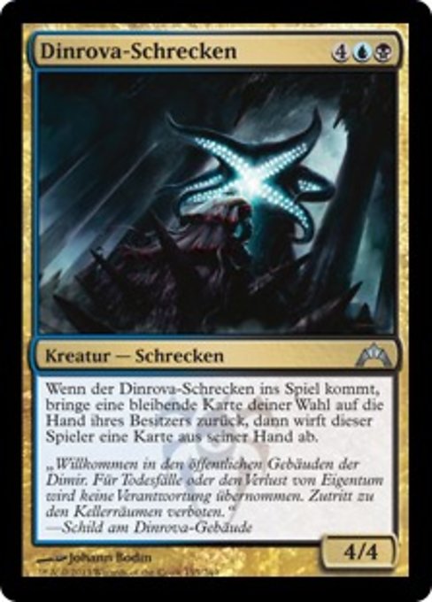 |  Variations— Parts— | Dinrova Horror4 / 4 When this creature enters, return target permanent to its owner's hand, then that player discards a card.