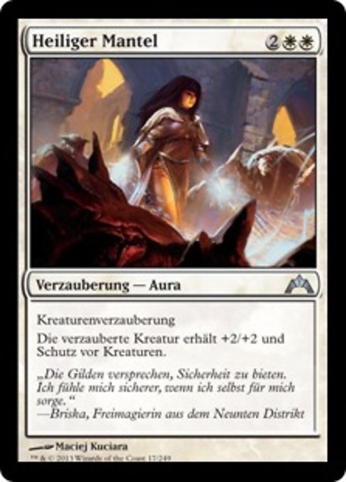 |  Variations— Parts— | Holy MantleEnchant creature Enchanted creature gets +2/+2 and has protection from creatures.