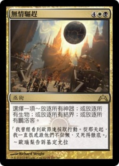 |  Variations— Parts— | Merciless EvictionChoose one — • Exile all artifacts. • Exile all creatures. • Exile all enchantments. • Exile all planeswalkers.