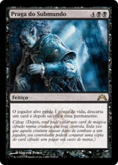 ![]() Variations— Parts— | Undercity PlagueTarget player loses 1 life, discards a card, then sacrifices a permanent of their choice. Cipher (Then you may exile this spell card encoded on a creature you control. Whenever that creature deals combat damage to a player, its controller may cast a copy of the encoded card without paying its mana cost.)