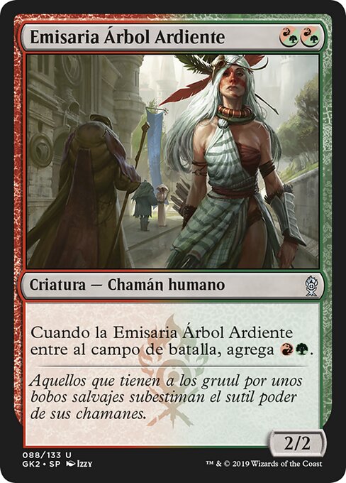 |  Variations— Parts— | Emisaria Árbol Ardiente2 / 2 Cuando la Emisaria Árbol Ardiente entre al campo de batalla, agrega