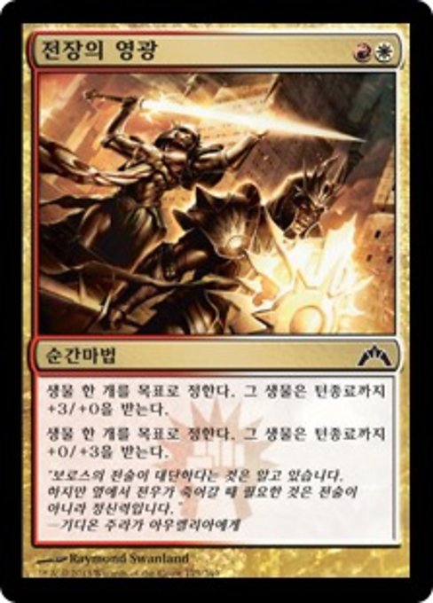 |  Variations— Parts— | 軍部の栄光クリーチャー1体を対象とし、クリーチャー1体を対象とする。その前者はターン終了時まで+3/+0の修整を受ける。その後者はターン終了時まで+0/+3の修整を受ける。