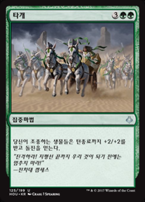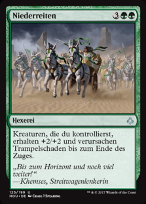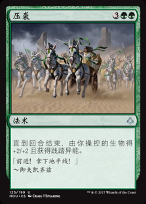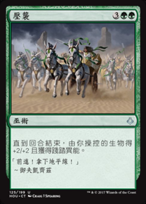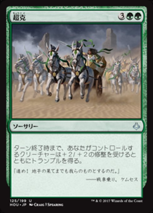 ![]() Variations— Parts— | OvercomeCreatures you control get +2/+2 and gain trample until end of turn. (Each of those creatures can deal excess combat damage to the player or planeswalker it's attacking.)