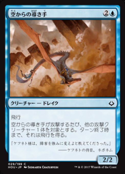 ![]() Variations— Parts— | Aerial Guide2 / 2 Flying Whenever this creature attacks, another target attacking creature gains flying until end of turn.
