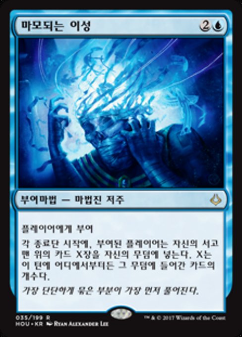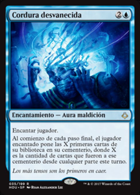 ![]() Variations— Parts— | Fraying SanityEnchant player At the beginning of each end step, enchanted player mills X cards, where X is the number of cards put into their graveyard from anywhere this turn.