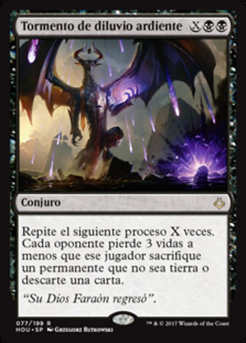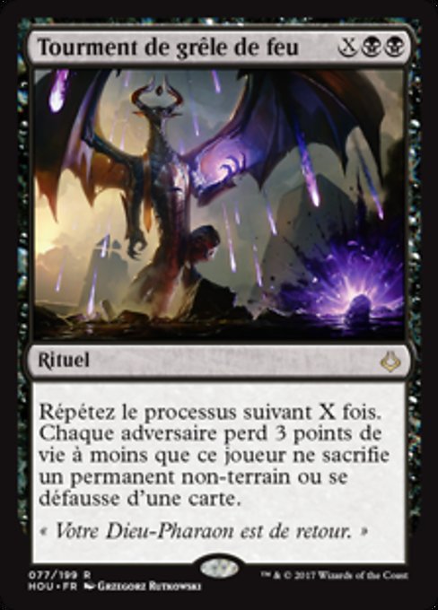 ![]() Variations— Parts— | Torment of HailfireRepeat the following process X times. Each opponent loses 3 life unless that player sacrifices a nonland permanent of their choice or discards a card.