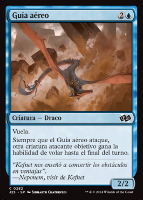 ![]() Variations— Parts— | Guía aéreo2 / 2 Vuela. Siempre que el Guía aéreo ataque, otra criatura atacante objetivo gana la habilidad de volar hasta el final del turno.
