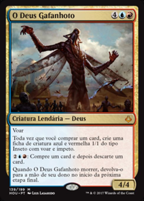![]() Variations— Parts— | Бог-Саранча4 / 4 Полет Каждый раз, когда вы берете карту, создайте одну фишку существа 1/1 синее и красное Насекомое с Полетом и Ускорением. Когда Бог-Саранча умирает, верните его в руку его владельца в начале следующего заключительного шага.
