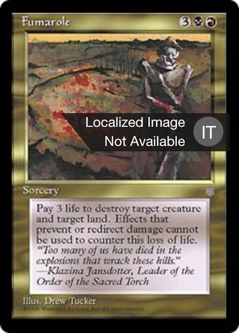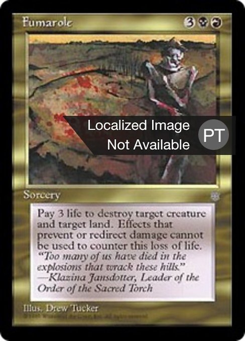 |  Variations— Parts— | FumaroleAs an additional cost to cast this spell, pay 3 life. Destroy target creature and target land.