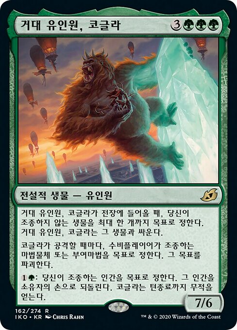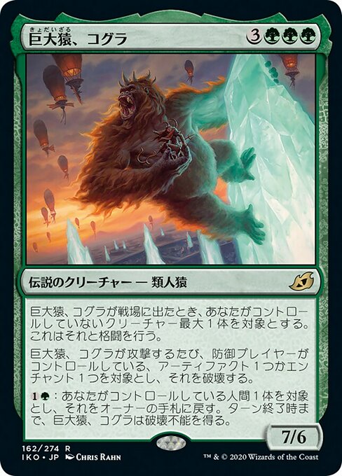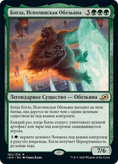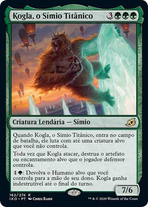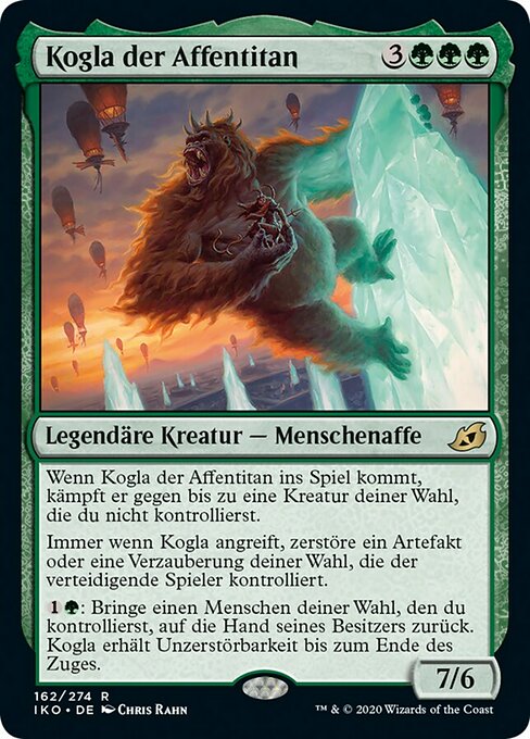 ![]() Variations : 1Parts— | Kogla, the Titan Ape7 / 6 When Kogla enters, it fights up to one target creature you don't control. Whenever Kogla attacks, destroy target artifact or enchantment defending player controls.