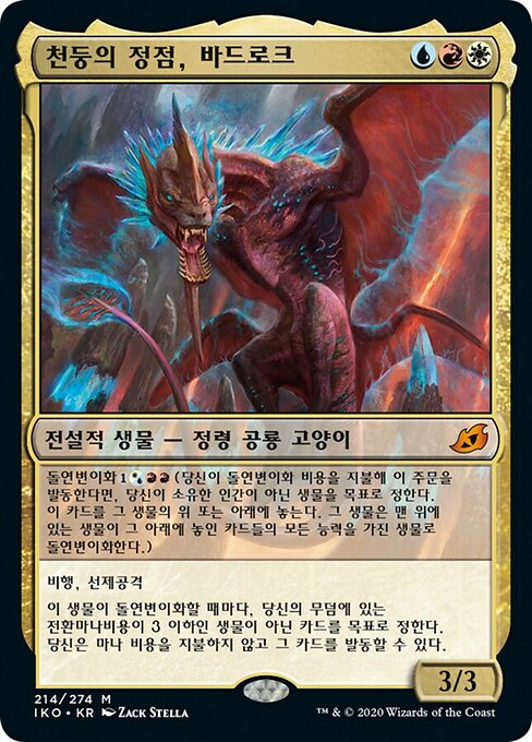 |  Variations : 2Parts— | Vadrok, Apex of Thunder3 / 3 Mutate  Flying, first strike Whenever this creature mutates, you may cast target noncreature card with mana value 3 or less from your graveyard without paying its mana cost.
