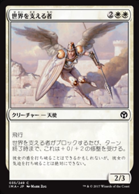 ![]() Variations— Parts— | Sustainer of the Realm2 / 3 Flying Whenever this creature blocks, it gets +0/+2 until end of turn.