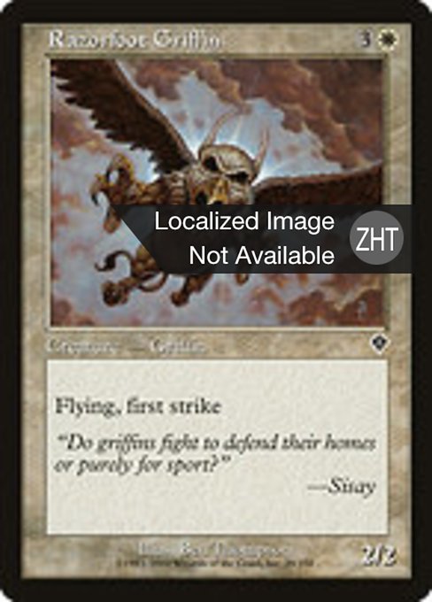 |  Variations— Parts— | Grifone dal Tallone Tagliente2 / 2 Flying (This creature can't be blocked except by creatures with flying or reach.) First strike (This creature deals combat damage before creatures without first strike.)