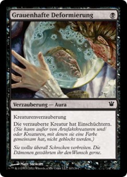 |  Variations— Parts— | Gruesome DeformityEnchant creature Enchanted creature has intimidate. (It can't be blocked except by artifact creatures and/or creatures that share a color with it.)
