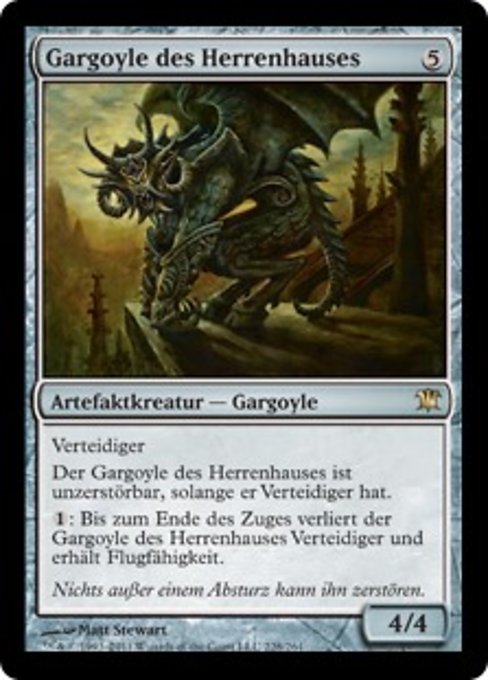 |  Variations— Parts— | Manor Gargoyle4 / 4 Defender This creature has indestructible as long as it has defender.